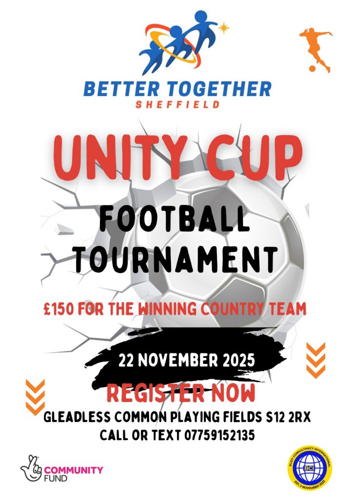 Join us for our Unity Cup Football Tournament to mark the last day of the week’s activities! The winning country team will win £150 cash prize!