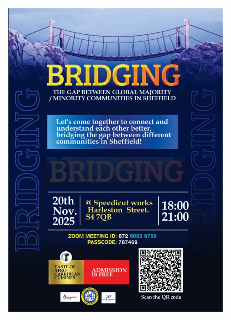 Come join us for an event focused on bridging the gap between global majority/minority communities in Sheffield. This is a great opportunity to connect with others, share experiences, and learn from one another.
